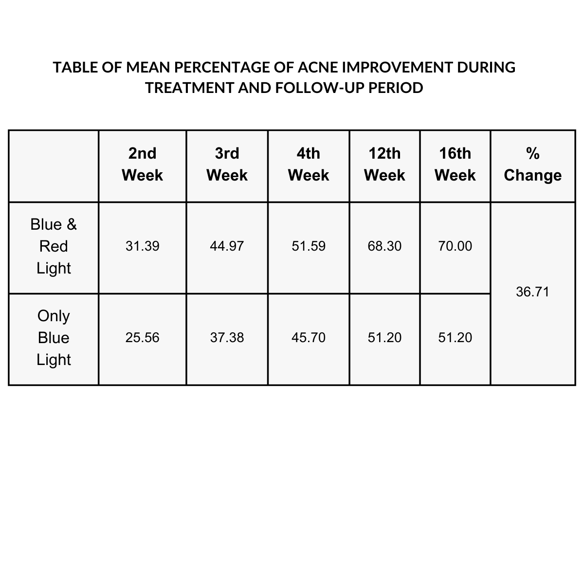- Blue (415nm) and red (633nm) LED wavelengths work in synergy to target blemishes more effectively than blue light alone