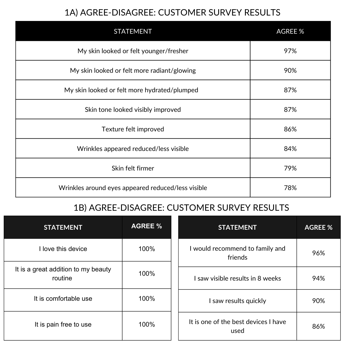 You can expect to see visible results in just 4 weeks when used consistently 10 minutes a day, 3 to 5 times per week. Although effective on its own, you’ll achieve the best results when used with our CurrentBody Skin Hydrogel Face Mask for enhanced LED efficacy.