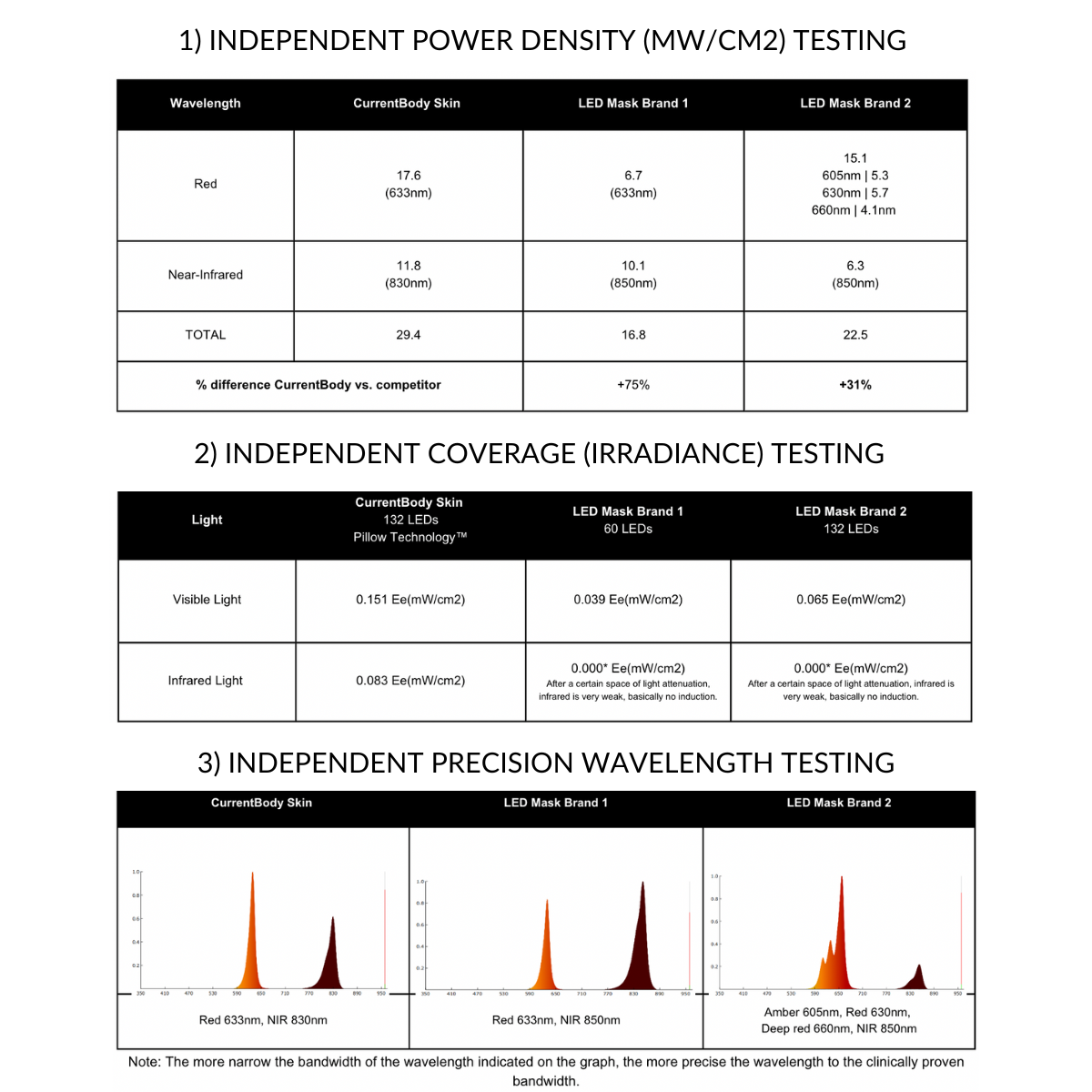 - 3 clinically proven wavelengths target crepey skin on the neck and chest: red (633nm), near-infrared (830nm) and new deep near-infrared (1072nm)